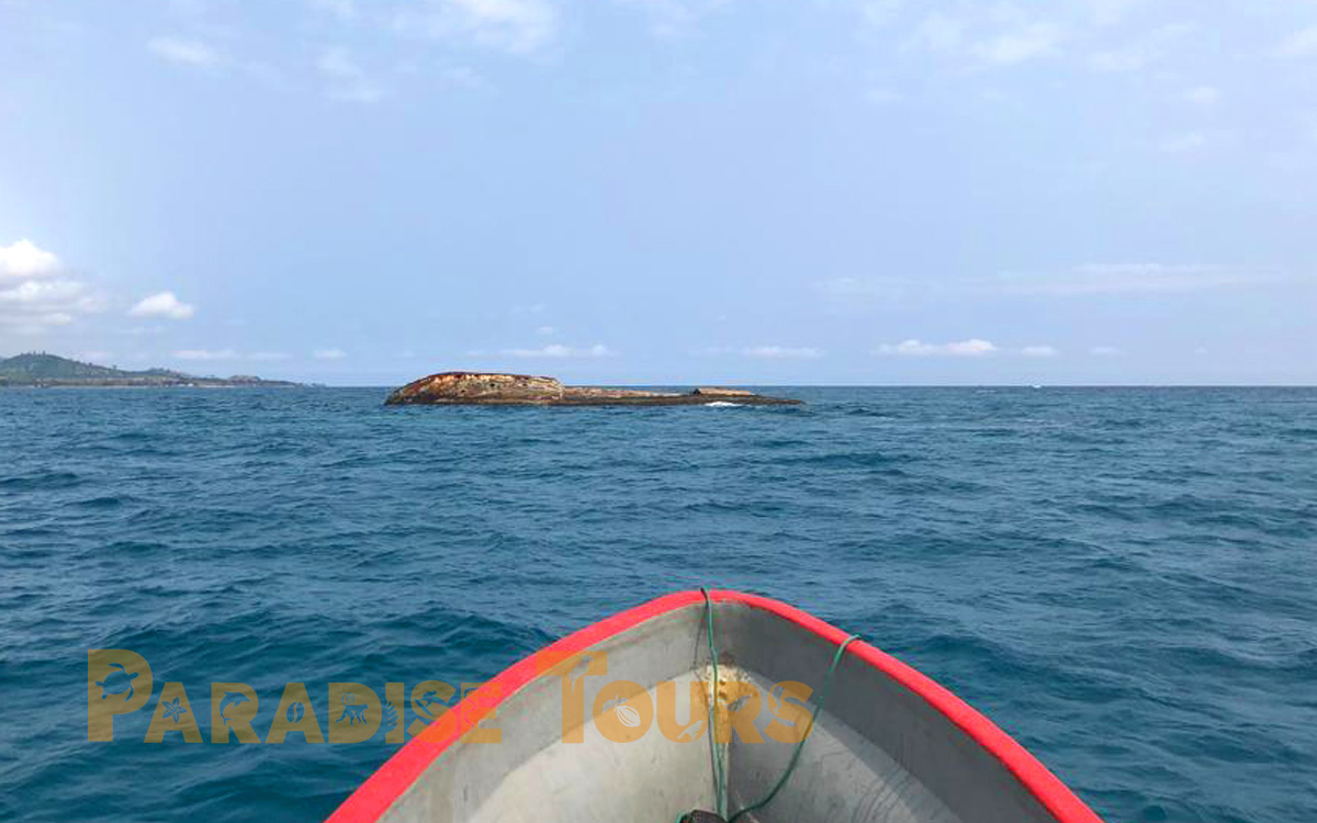 Not far from the island lies a hauntingly beautiful shipwreck, resting about 9 meters underwater. Now an artificial reef, this rusting structure has become a refuge for countless marine creatures, creating an unexpected and fascinating diving spot.