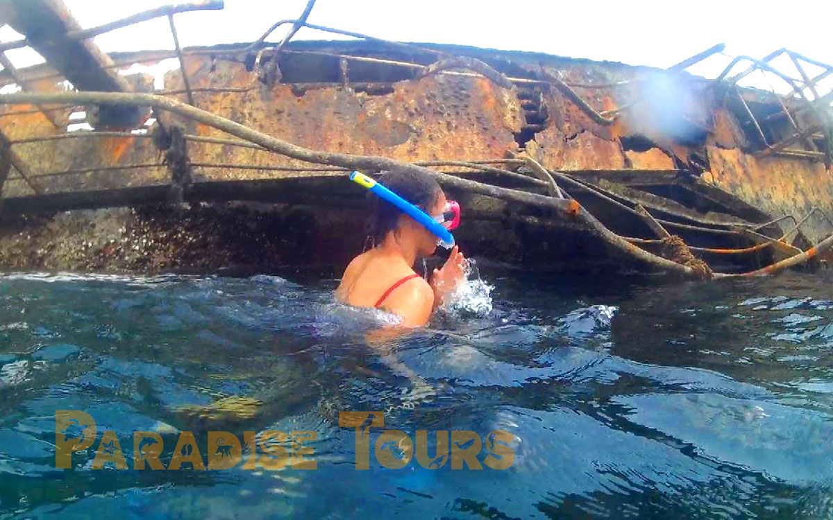 The iron structure of the shipwreck is sharp... Careful when you approach it. Also, when diving, do not enter the ship, as there are risk of getting stuck... Anyhow... our crew will be watching !